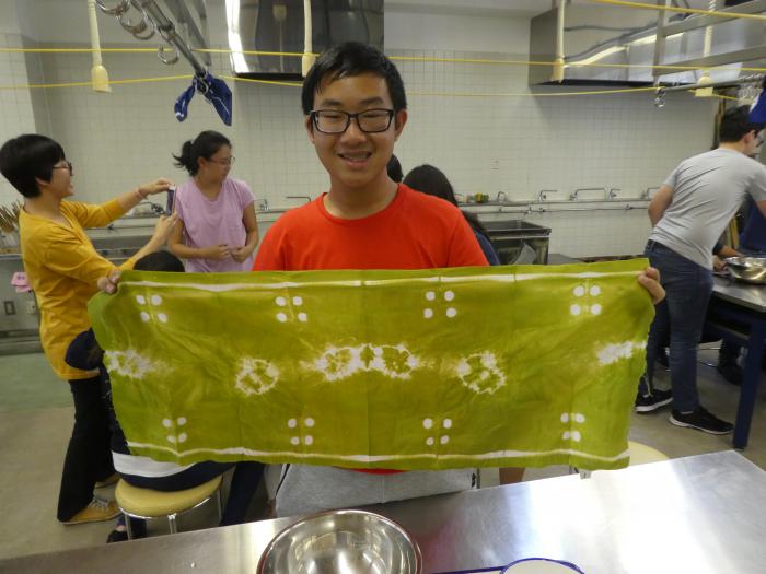 札幌芸術の森・クラフト工房様にて、日本手ぬぐいを、化学染料を使用した”絞り染め”で染め上げました。 伝統的な製法を学ぶとともに、日本文化に直接触れてもらう良い機会となりました。 |