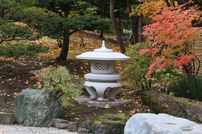 昭和38年(1963年)に札幌市が寄贈し、現在、ポートランド日本庭園に置かれています。石燈籠の前には北海道の形をした石畳が敷かれ、札幌にあたる部分には赤色の石が使われています。