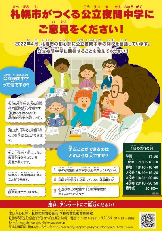 札幌市公立夜間中学設置基本計画及びパブリックコメント結果について