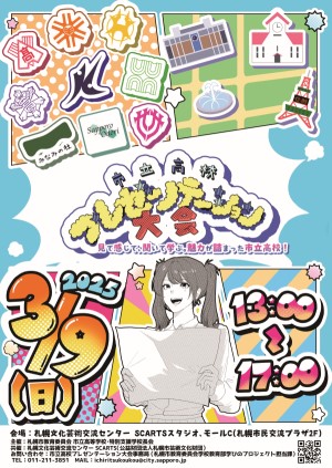 札幌市立高校7校(旭丘、大通、新川、平岸、清田、啓北商業、藻岩)、開成中等教育学校、みなみの杜高等支援学校に通う生徒が、これまでの「総合的な探究の時間」などの学習の成果や、それぞれの学校の魅力・特色について発表する「市立高校プレゼンテーション大会2024」を開催します。