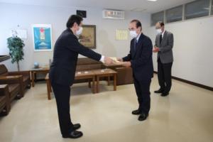 今回は、統計調査員としてさまざまな調査に従事し、平成17、22、27年および令和2年の国勢調査における指導員を務めた、芸術の森地区統計調査員協議会の酒井正人会長と簾舞地区統計調査員協議会の南里正博会長が表彰され、大平英人南区長から表彰状が手渡されました。