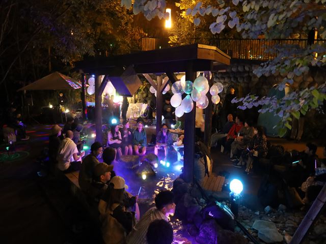足湯に浸かりながら、音楽とイルミネーションをお楽しみください。