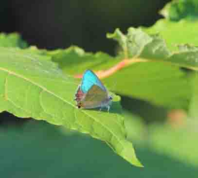 ミドリシジミはメタリックな青緑色の羽が鮮やかで、小さい体で飛び回る様子がとても可愛いです。