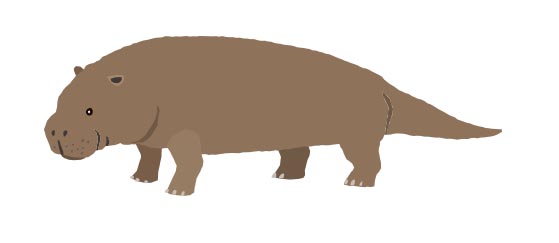 そのとおり。長い年月をかけて、陸で生活するグループと海で生活するグループに分かれていくよ。 そして、カイギュウ化石として一番古いと言われているのが、ジャマイカの5300万年前の地層から見つかったプロラストムス科の「ペゾシレン」というカイギュウです。 ペゾシレンは丈夫な手足をもっていて、海と陸を行き来しながら生活していたといわれているんだよ。 |