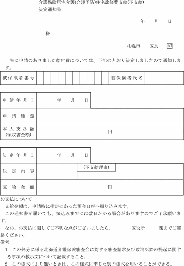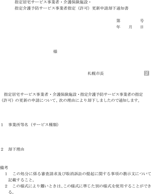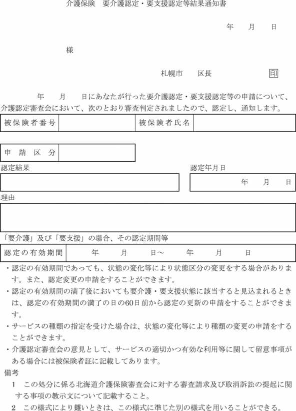 様式9)により当該申請者に通知するものとし、要介護状態区分等の変更を必要ないものと認めたときは、介護保険要介護認定・要支援認定等申請却下通知書(