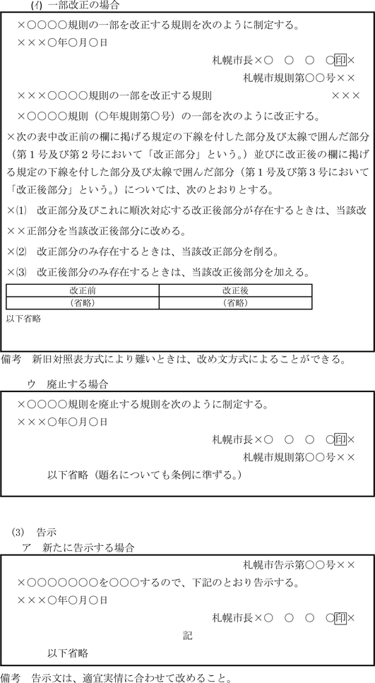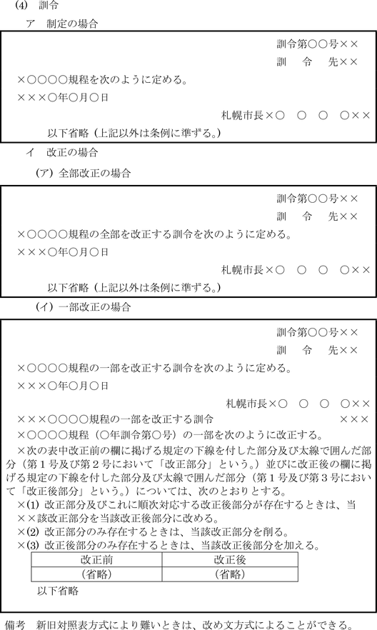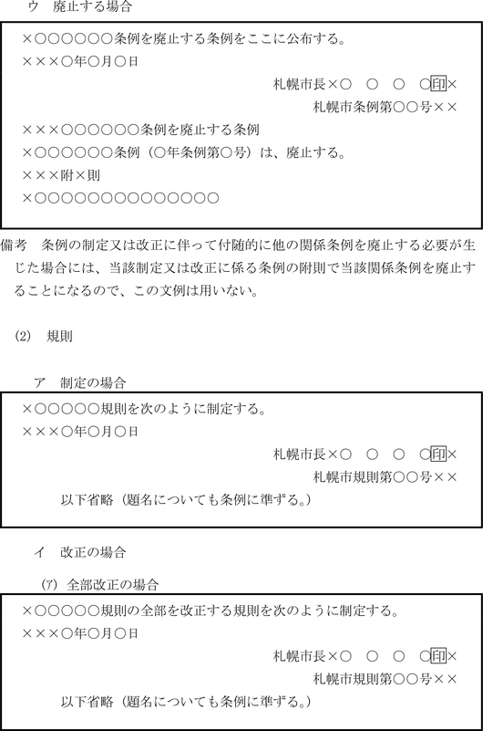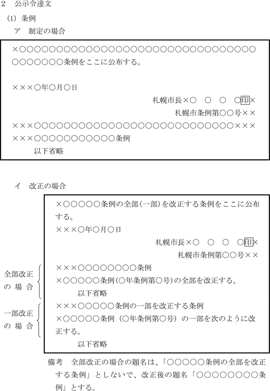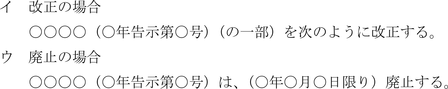 イ 条例、規則等において条文形式をとる場合は、次の例によるものとする。