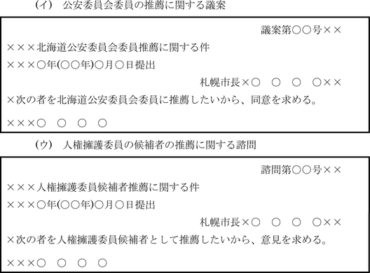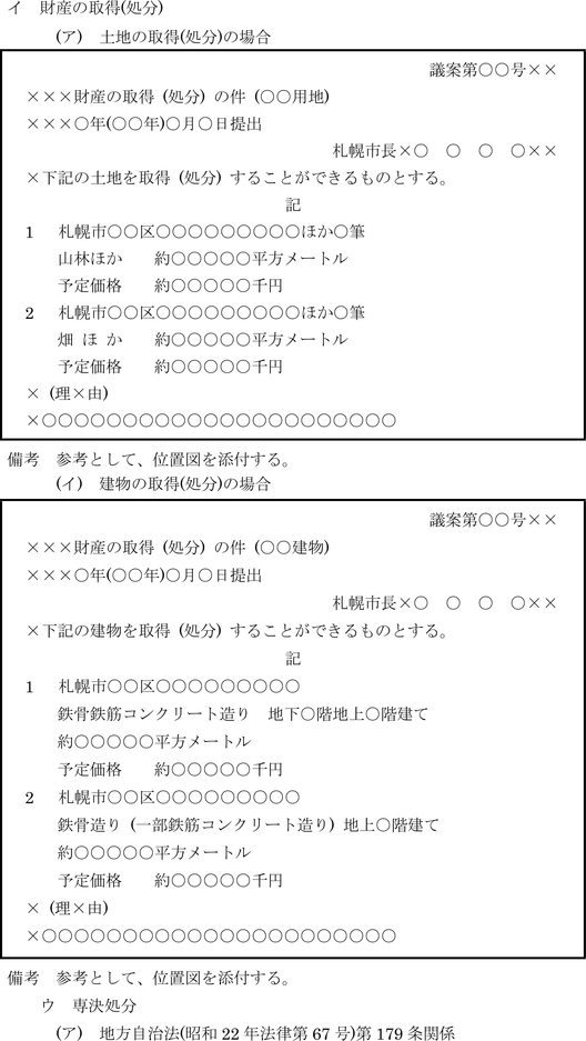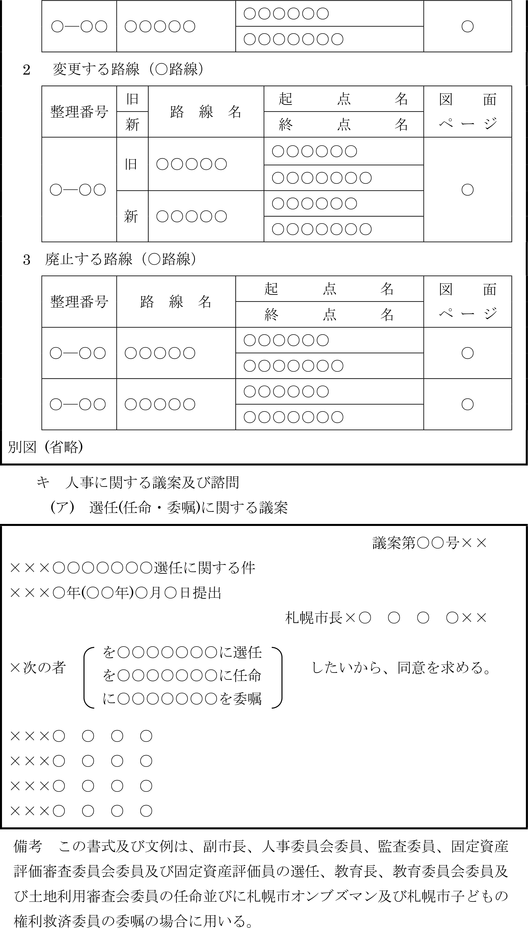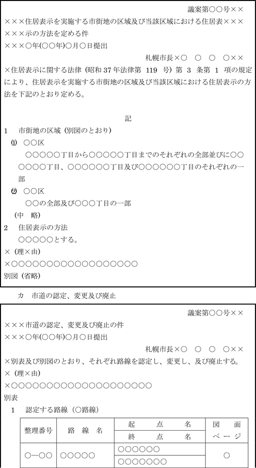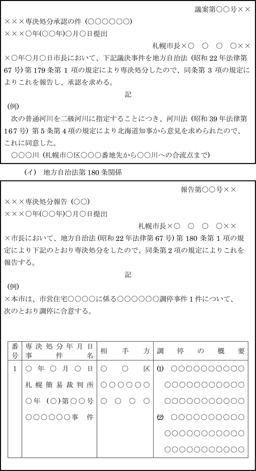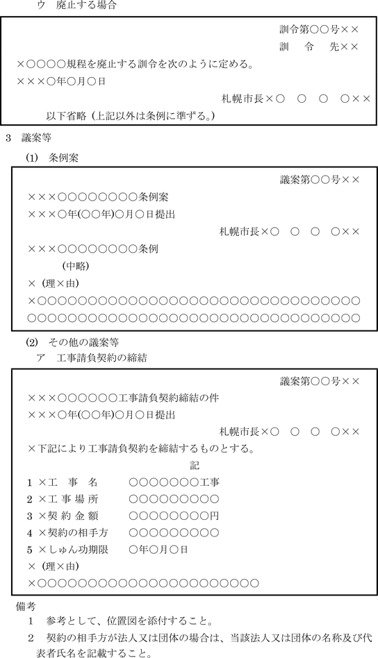 第9条 一般文書、公示令達文及び議案等の書式及び文例は、