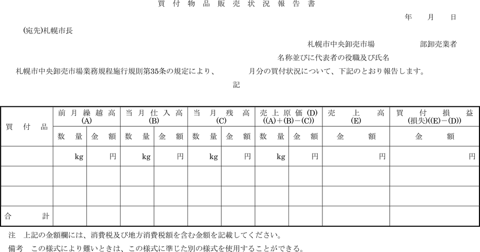 業務規程第12条の4第2項の規定による財産の状況を記載した書類の提出は、卸売業者の財産の状況が