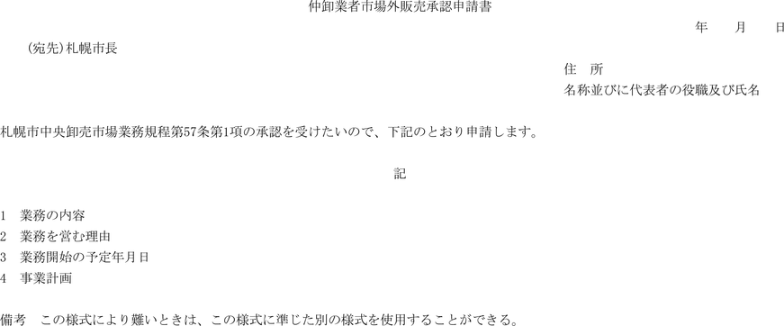 第3条 卸売業者、仲卸業者又は関連事業者は、市場の開場する日に臨時に休業し、又は開場しない日に臨時に営業しようとするときは、市長の承認を受けなければならない。