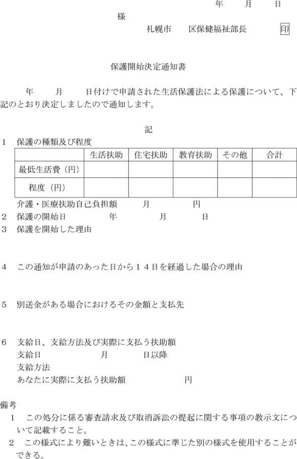 第5条 法第24条第3項、同条第9項において準用する同条第3項及び法第25条第2項並びに法第26条の書面は、それぞれ保護開始決定通知書(