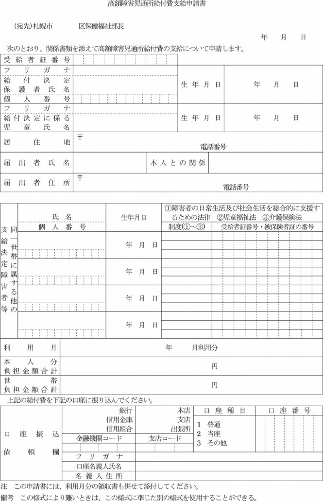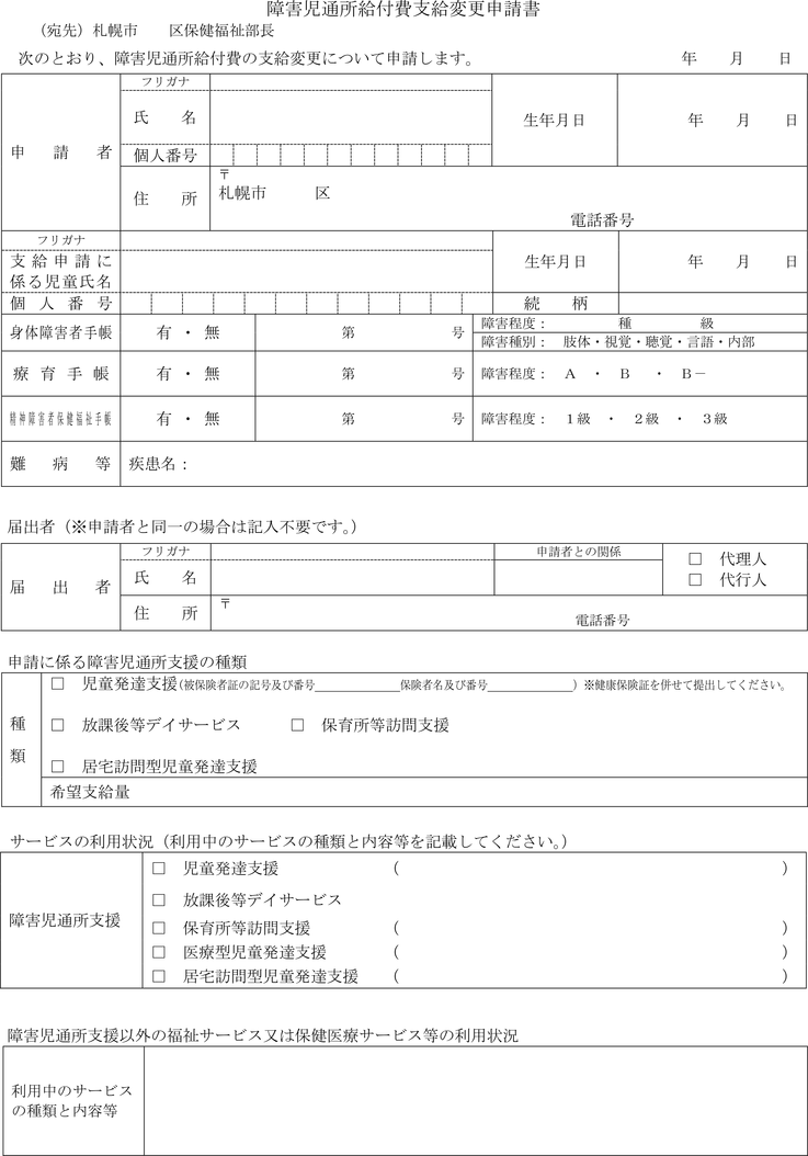第8条 法第21条の5の6第1項の規定による障害児通所給付費(法第21条の5の3第1項に規定する障害児通所給付費をいう。以下同じ。)の支給の申請は、障害児通所給付費支給申請書(