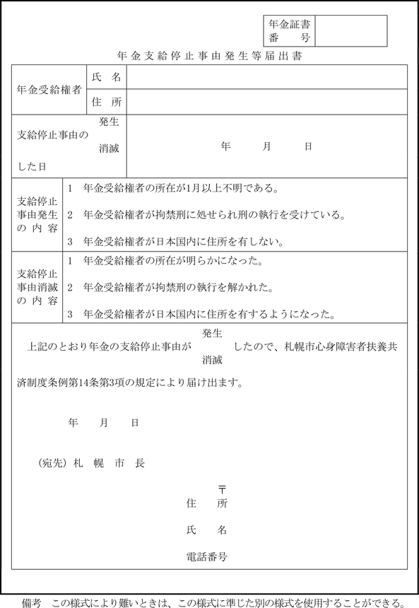 年金支給停止事由発生等届出書(様式23)