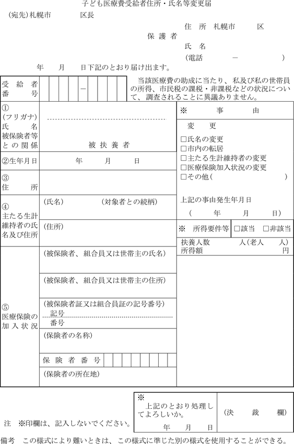 同条の規定による届出は、子ども医療費受給者住所・氏名等変更届(
