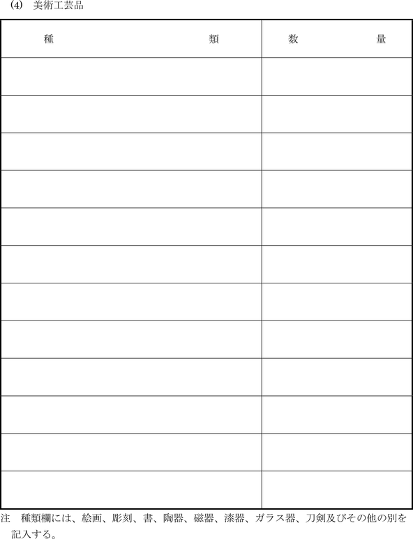 第3条 次の各号に掲げる資産等については、当該各号に定める種類ごとに区分して資産等報告書及び資産等補充報告書を作成するものとする。