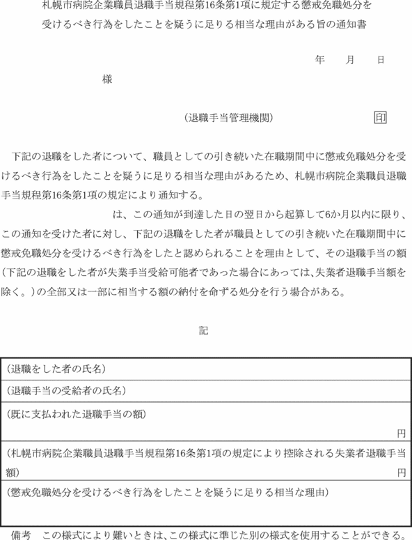 3 札幌市病院企業職員退職手当規程の一部を改正する規程(平成19年病院局規程第6号)の一部改正〔省略〕