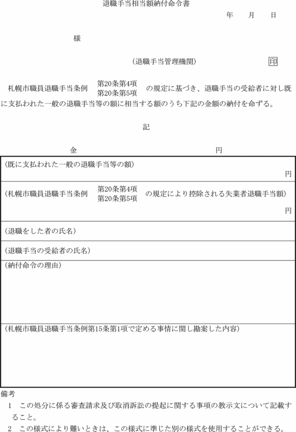 札幌市職員退職手当条例の規定による退職手当の支給制限等に係る書面の様式を定める規則