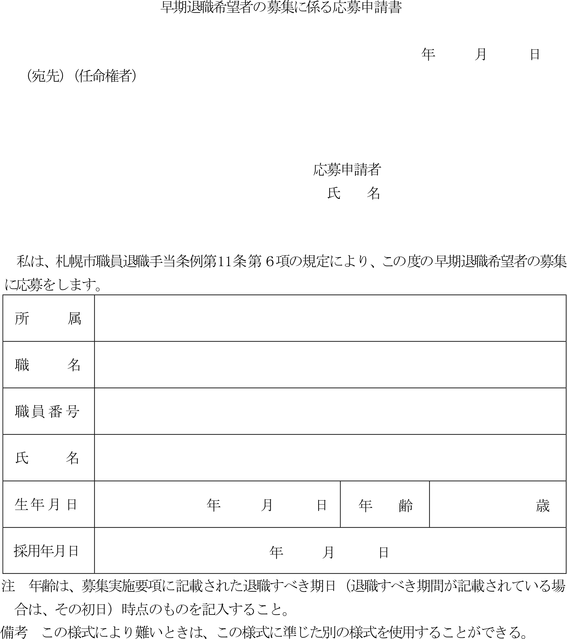 札幌市職員退職手当条例の規定による早期退職希望者の募集及び認定の制度に係る書面の様式等を定める規則