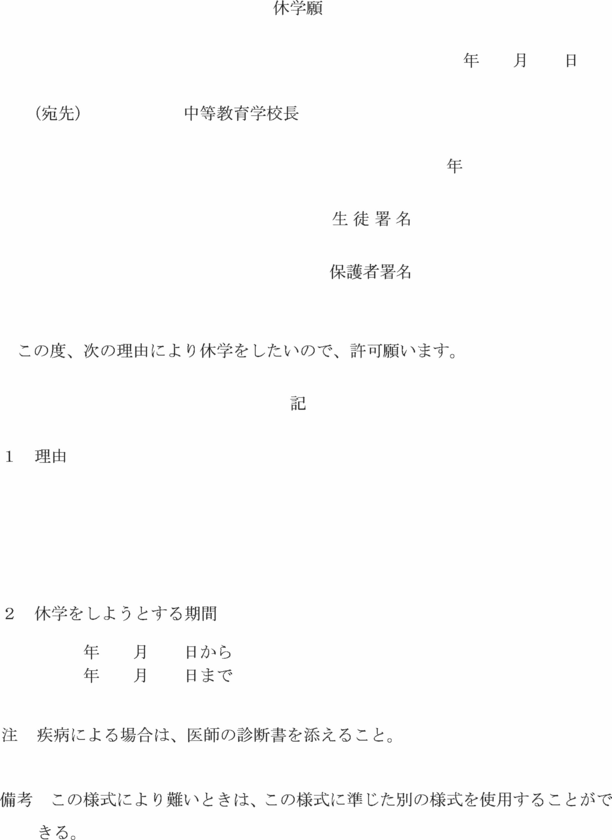 様式10)に医師の診断書その他の校長が必要と認める書類を添えて校長に願い出なければならない。