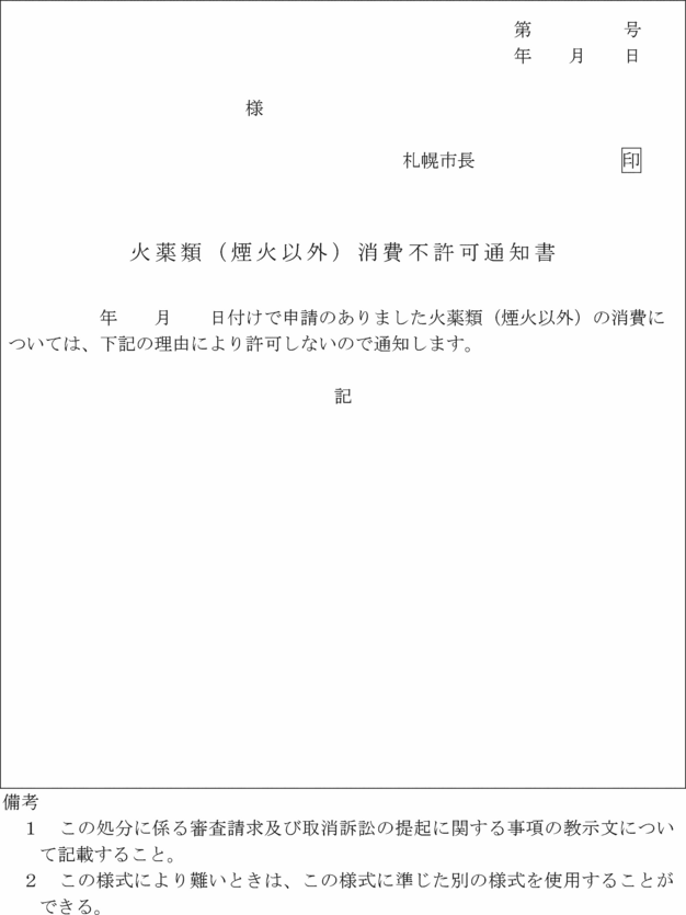 様式22)を、許可をしないときは火薬類(煙火)消費不許可通知書(