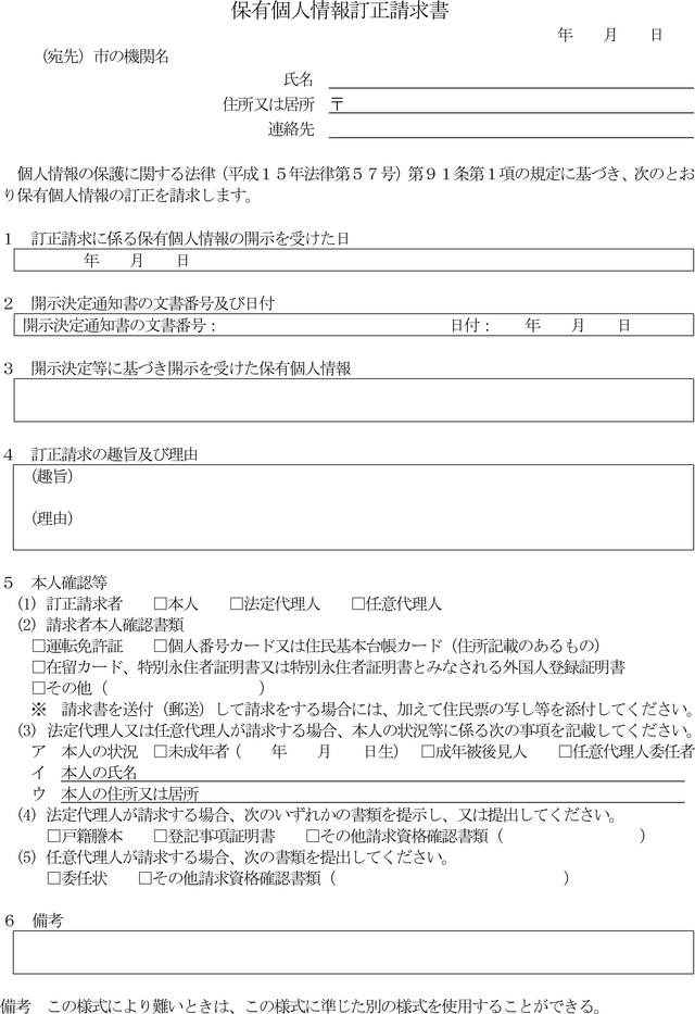 第12条 法第91条第1項に規定する訂正請求書は、保有個人情報訂正請求書(