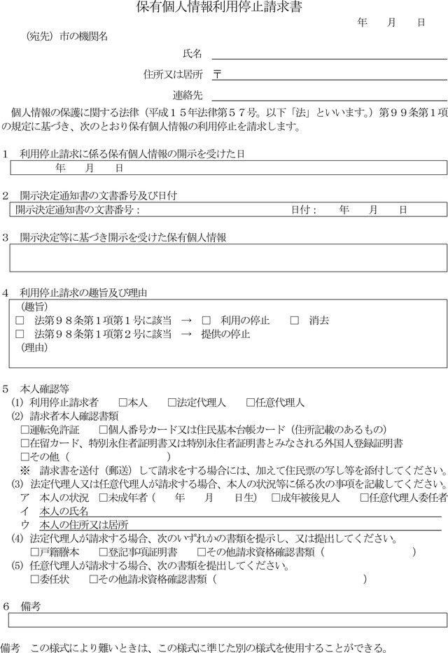 (利用停止請求書)