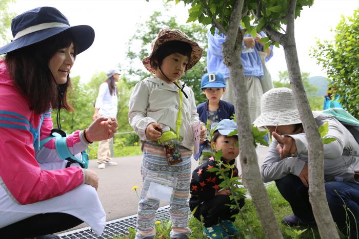 小さな子どもとその保護者を対象に、自然豊かな西区の魅力を楽しみながら環境について学んでもらうことを目的に行っているイベントです。季節に応じたプログラムを設けることで、四季折々の自然を直に触れ、自然の中で遊ぶ楽しさを感じてもらいます。