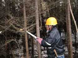 除伐材の有効活用をしています。キノコの菌を植え付けています。