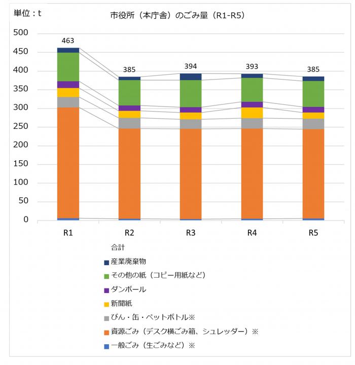 令和1~令和5年度に市役所(本庁舎)から出されたごみ量を公開しています。