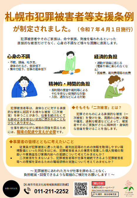 <札幌市の犯罪被害者等支援に係る取組みは、以下のとおりです。>