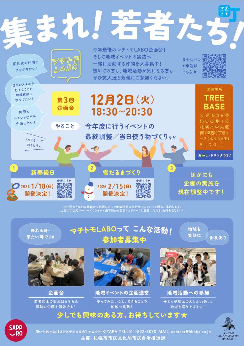 また、地域イベントの企画や、「若者ネットワーク」に登録している若者同士の交流を深めるために、定期的に交流会も開催します。札幌市公式なので安心です。