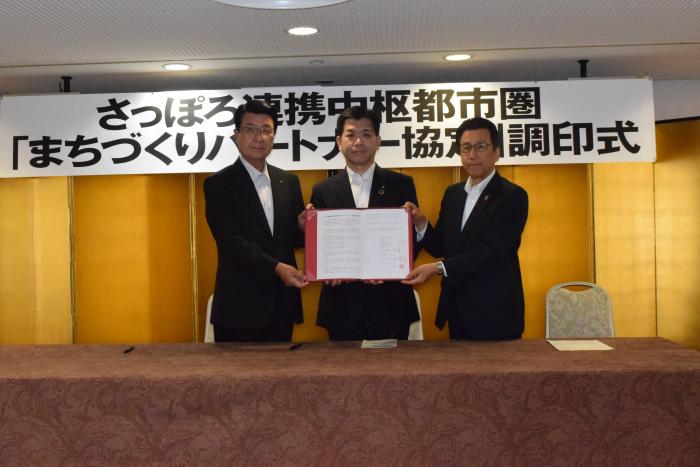 株式会社ローソンとさっぽろ連携中枢都市圏を構成する12市町村は、さっぽろ連携中枢都市圏ビジョンのより一層の推進と、圏域における官民が連携したまちづくり活動を促進することを目的に包括協定「さっぽろ連携中枢都市圏『まちづくりパートナー協定』」を令和元年7月12日(金曜日)に締結しました。