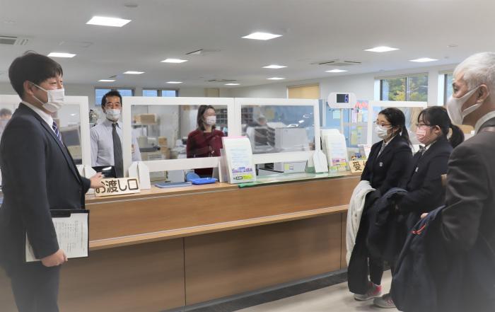 贈呈式の前には、出張所の案内看板や名札が実際に使われている様子を見学してもらいました。