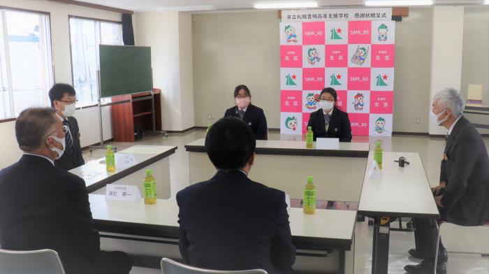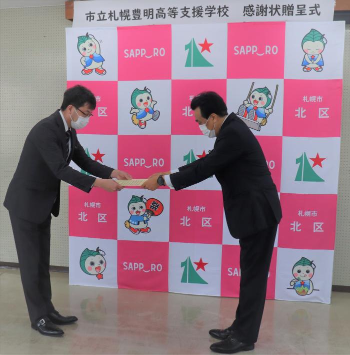 これは、同校による「生徒への技術指導と地域貢献活動の両立」を目指した取り組みの一環として行われたものですが、この素晴らしい活動について、北区長より感謝状を贈呈しました。