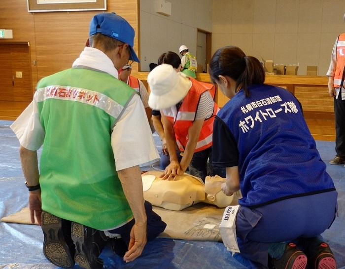また、非常時に備えた消火訓練や研修等を行い、地域の消防訓練で応急手当などの指導、火災予防啓発活動を行います。