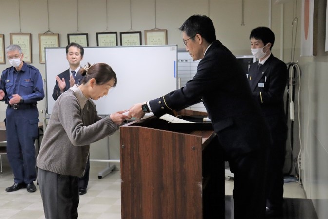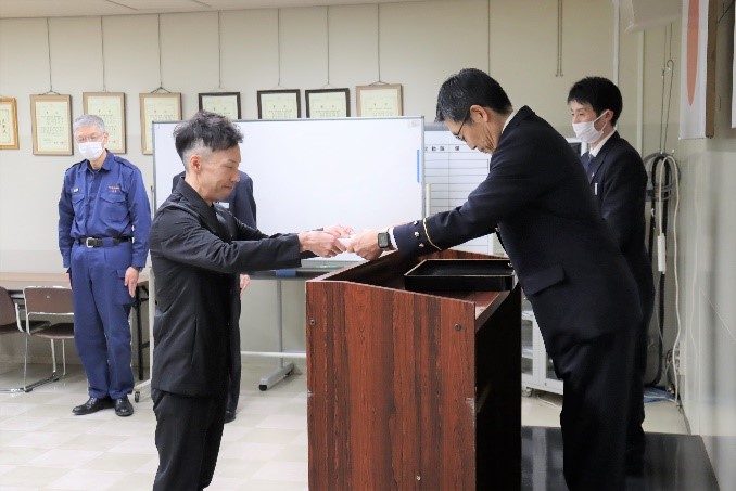 令和6年9月29日(日曜日)白石区主催のマラソン大会に参加中、救命処置を行ったお二人に対して、厚別消防署長から感謝状を贈呈しました。
