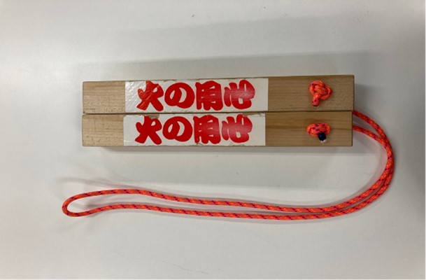 東区の各町内会で防火パトロールを行う際、より効果的にできるよう、防火委員会では防火法被と拍子木の貸出を行っています。