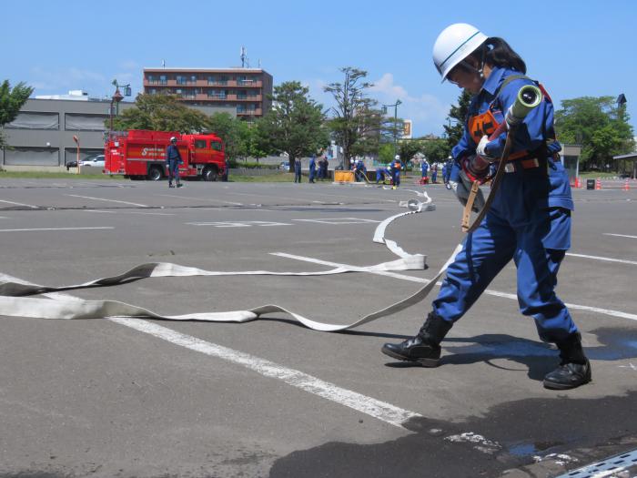 今大会は、消防団員の基本となる規律の確保と団員の団結を図ることを目的とし、実災害への対応力を高めるとともに、新人団員や女性団員も訓練に参加できるよう、スピードを競うものとせず、基本に忠実な訓練を行いました。
