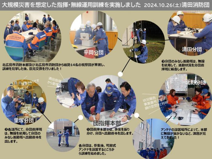 清田消防団では、令和6年10月26日(土曜日)に、大規模災害を想定した指揮・無線運用訓練を実施しました。