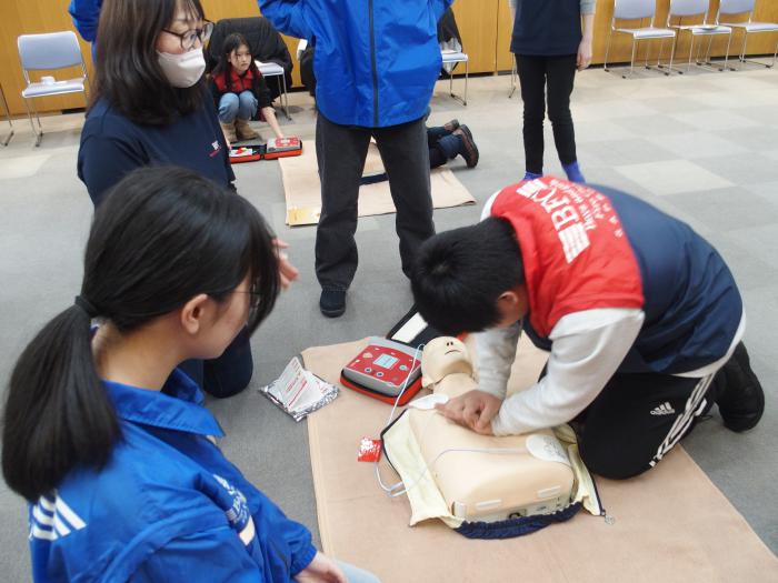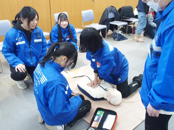 参加したクラブ員たちは、大人でも大変な心臓マッサージを、汗をかきながら一生懸命に行い、みんな真剣に取り組んでいました。