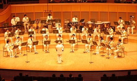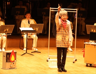 火災予防広報で自動消火装置や住宅用火災警報器を学んだあとは、引き続き消防音楽隊の単独演奏、「名探偵コナンメインテーマ」「め組のひと」「人生のメリーゴーランド」「情熱大陸コレクション」をお聴きいただきました。