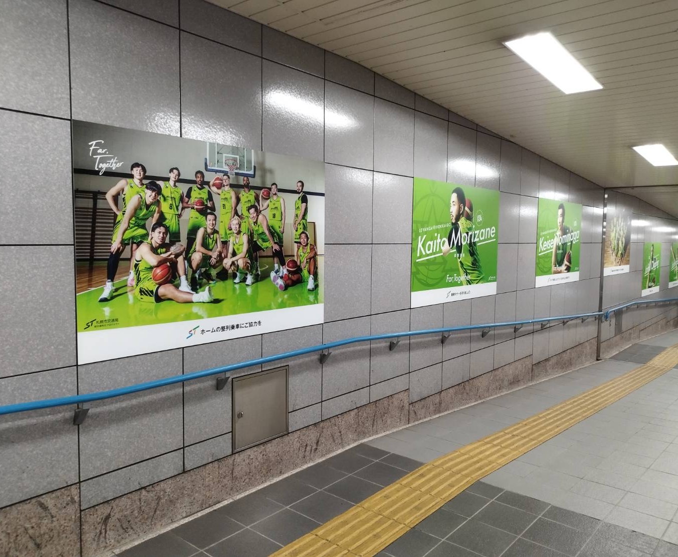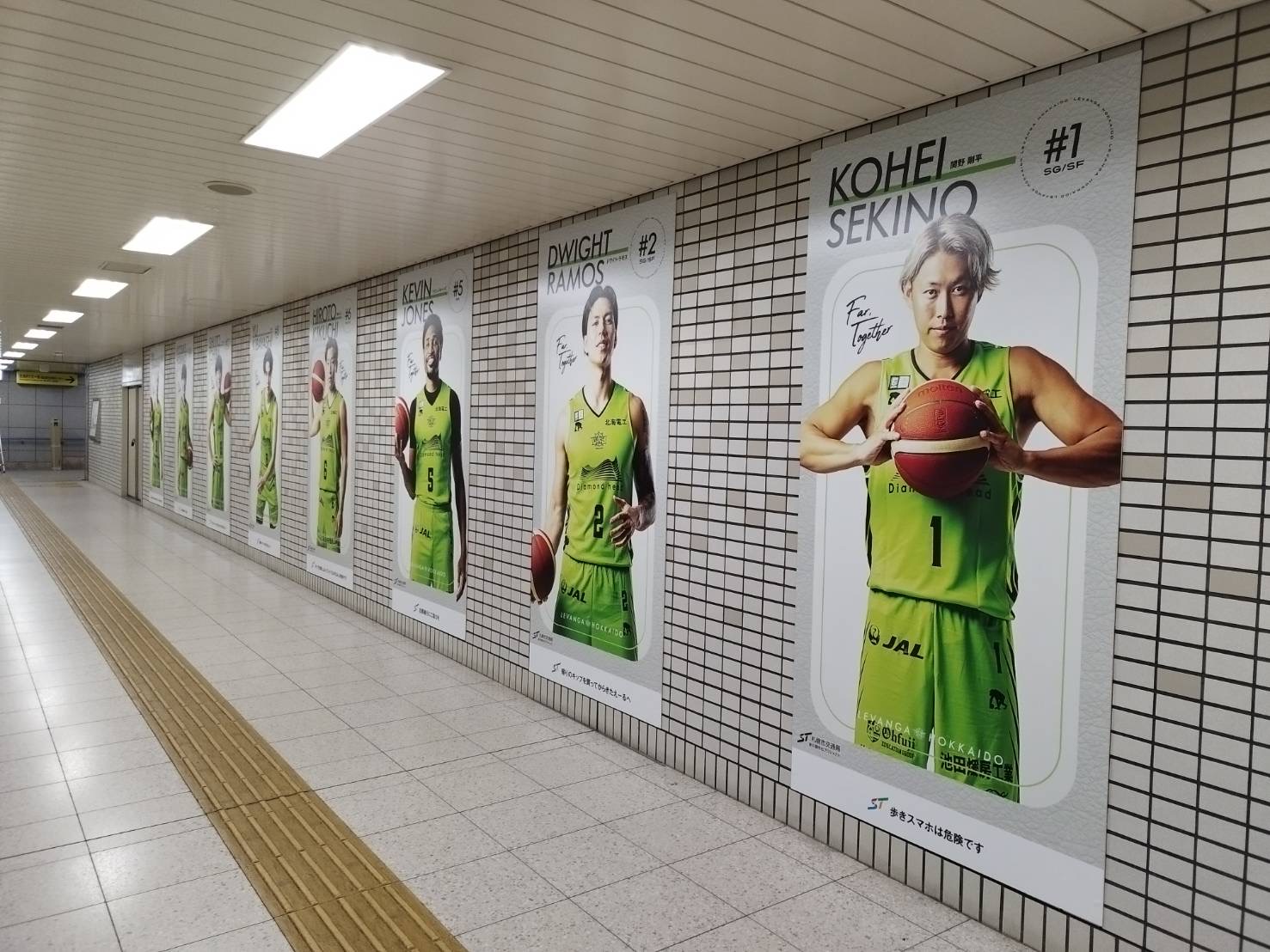 札幌市スポーツ局と連携し、レバンガ北海道及びエスポラーダ北海道のメインスタジアムである「北海道総合体育センター(北海きたえーる)」の最寄り駅である地下鉄東豊線豊平公園駅に選手やチームロゴ等の装飾を行いました。
