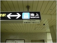 案内表示の方向にエレベーターは設置されているものの、距離が長いため、エレベーターの設置されている出口の番号と距離の表示を追加しました。