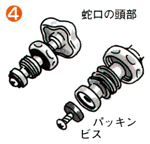蛇口の頭部には、パッキン・ビスが組み合わされています。