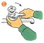 蛇口を全開にし、スパナを蛇口の頭部にかけて左に回します。