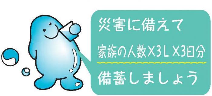 災害に備えて、1人あたり1日3リットルの飲料水を最低3日分、ご家庭で備蓄していただくようお願いしています。