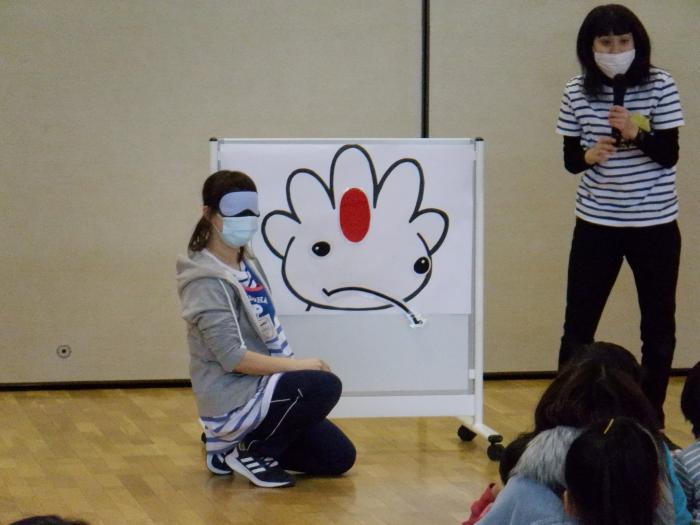 ポロップひろばに参加したみんなと“福笑い”で遊んだです。