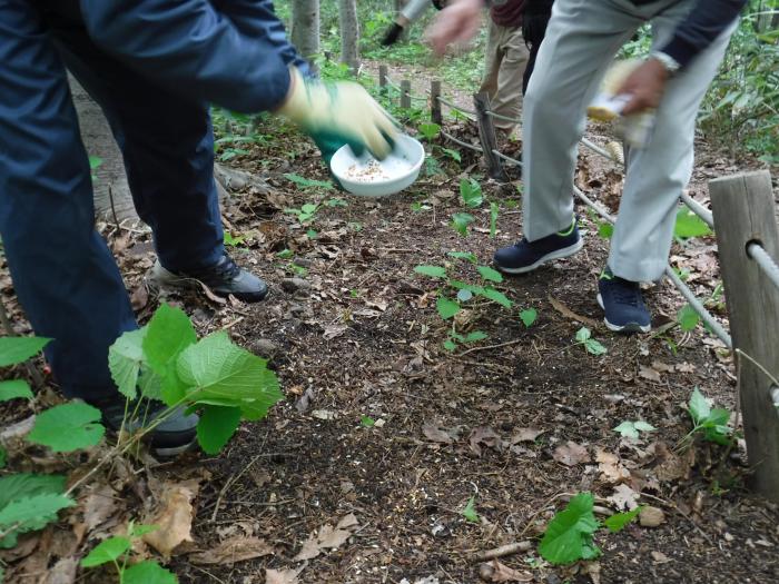 令和4年6月9日の木曜日、観察会同様、3年ぶりにカタクリの種まき会を行いました。