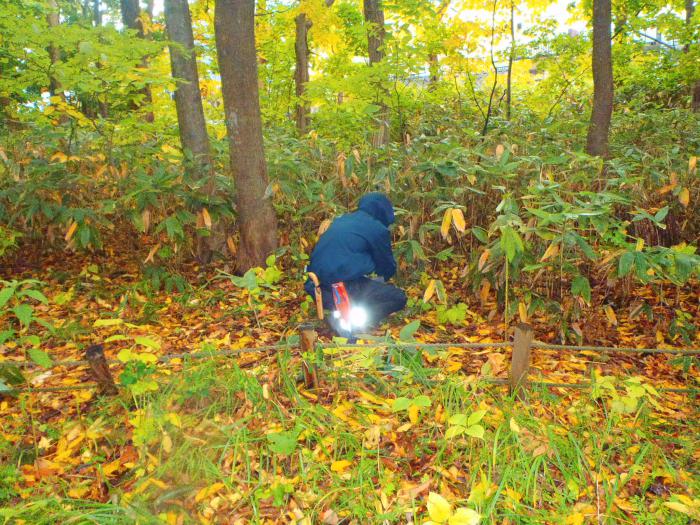 ツタウルシに気を付けながら、ミズナラやイタヤカエデの実生を抜き取ります。