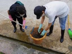 残りのチームで全長600mの側溝と排水桝をきれいにします。