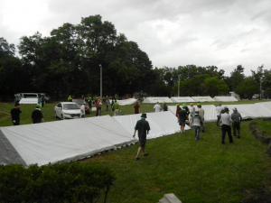 組み立てたテントは一旦畳んでおき、当日立ち上げ直すことになります。